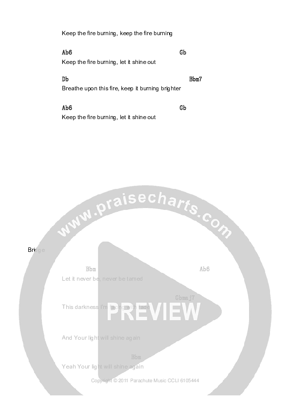 Keep The Fire Burning Chords PDF (Parachute Band)