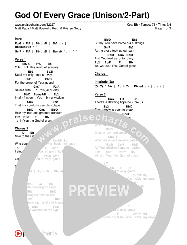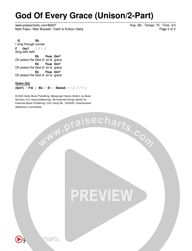 Download the PDF Chord Charts for God Of Every Grace (Unison/2-Part) by Keith & Kristyn Getty / Matt Boswell / Matt Papa / Arr. Mason Brown, from the album God Of Every Grace. This song was arranged by Mason Brown / Daniel Galbraith / Grant Wall in the key of Bb.