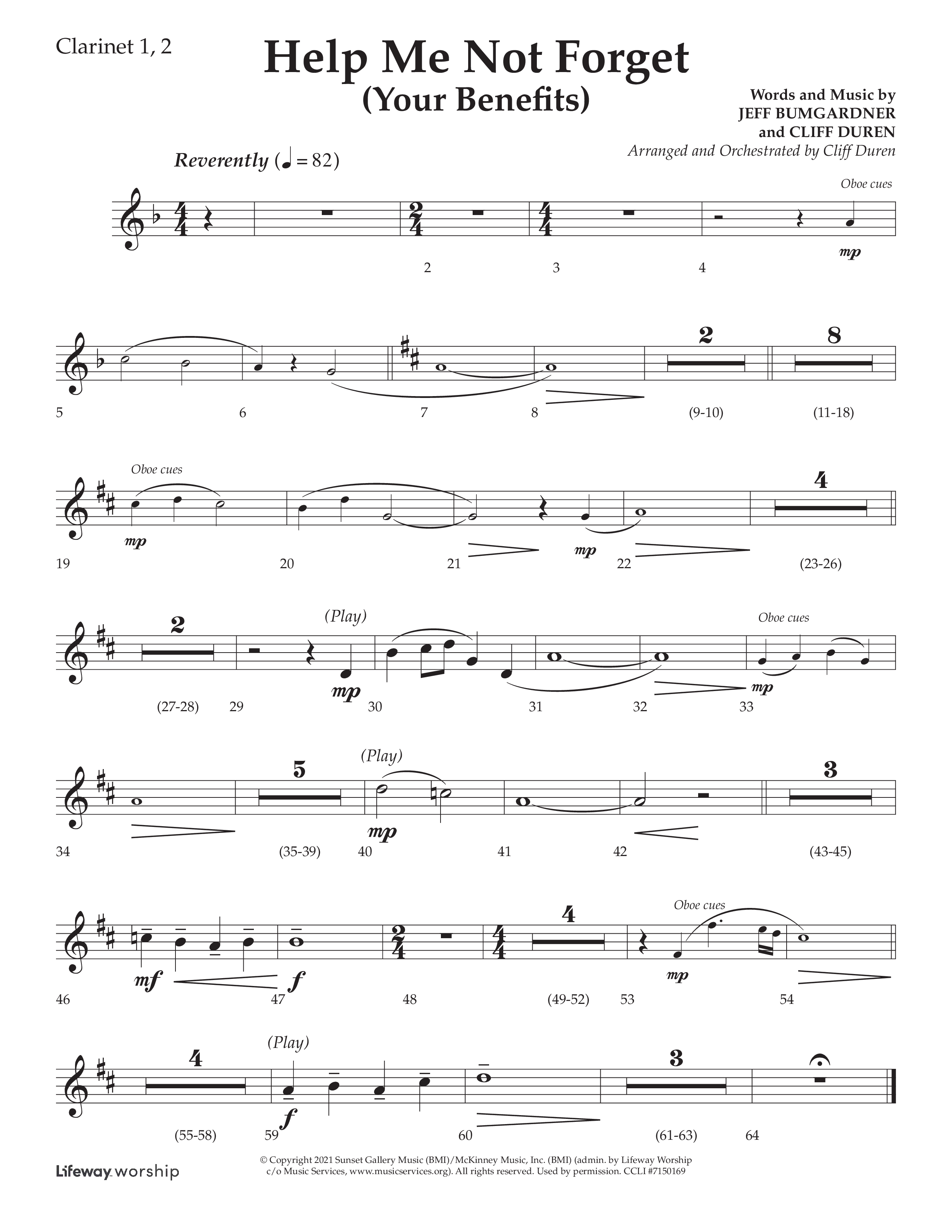 Help Me Not Forget (Your Benefits) (Choral Anthem SATB) Clarinet Sheet Music PDF (Lifeway Choral / Arr. Cliff Duren)