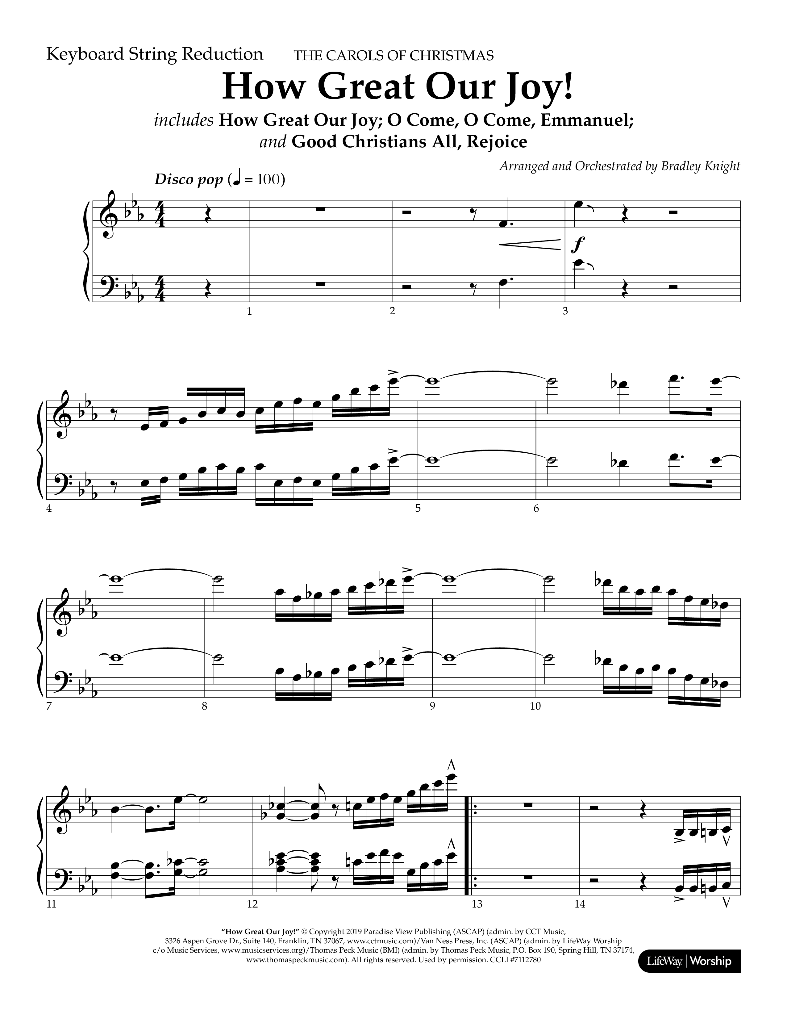 Download the String Reduction sheet music for How Great Our Joy (Choral Anthem SATB) by Lifeway Choral / Arr. Bradley Knight, from the album The Carols Of Christmas (Vol. 1). This song was arranged by Bradley Knight in the key of Eb.