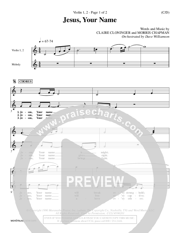 Download the Violin sheet music for Jesus Your Name by Morris Chapman, from the album Word Music Now.