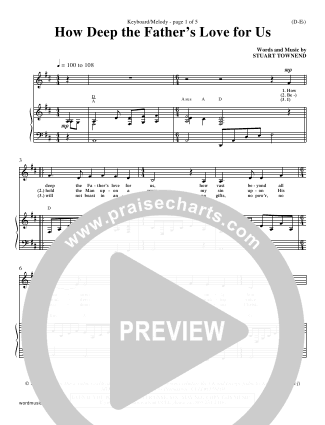 Download the Orchestration for How Deep The Father's Love For Us by Stuart Townend, from the album Word Music Now. This song was arranged by Dave Williamson in the key of D, E.