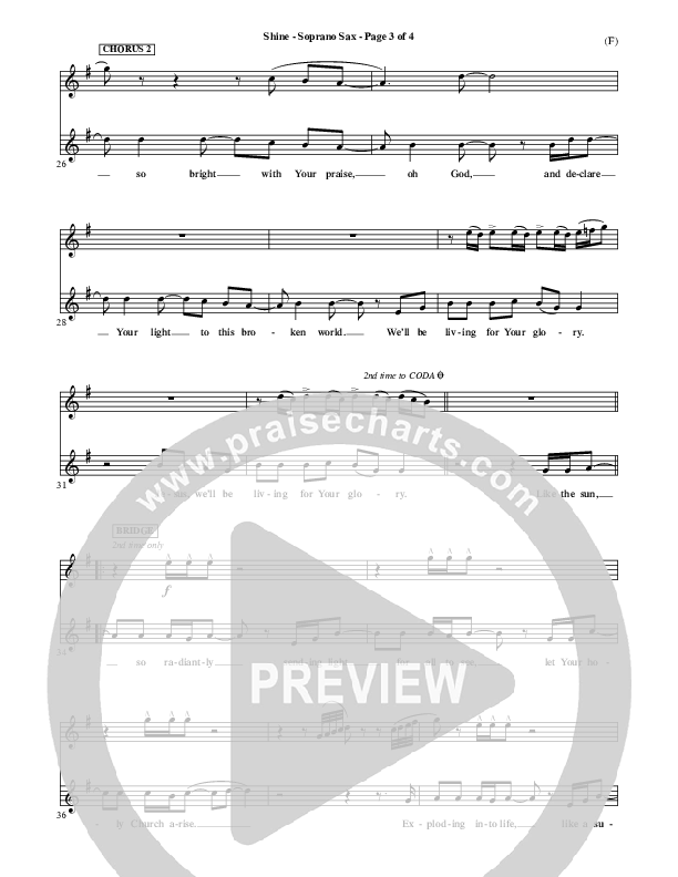 Download the Orchestration for Shine by Matt Redman, from the album Word Music Now. This song was arranged by David Shipps in the key of F, G.