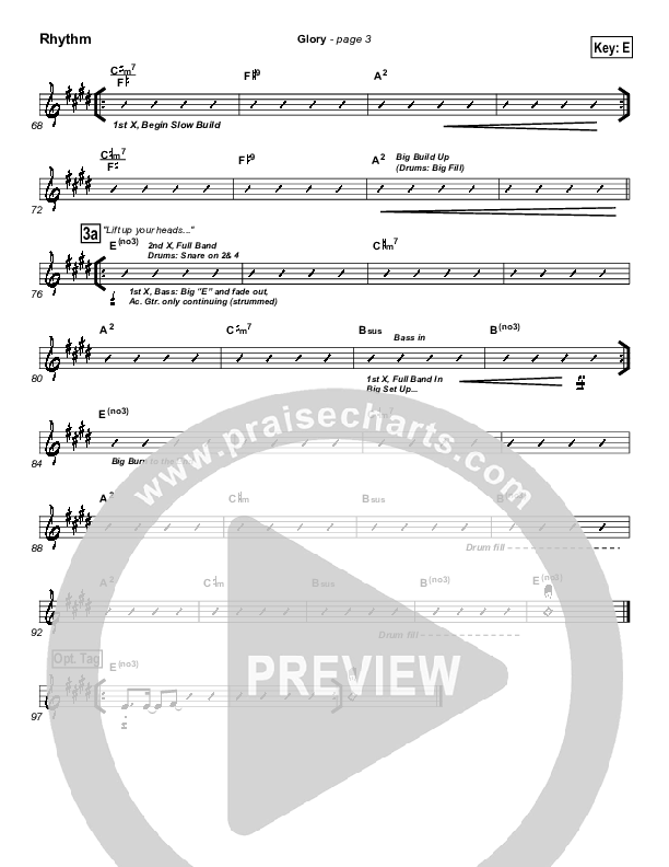 Download the Rhythm Chart for Glory by Hillsong Worship, from the album Hope. This song was arranged by Ed Hogan in the key of E, Eb.
