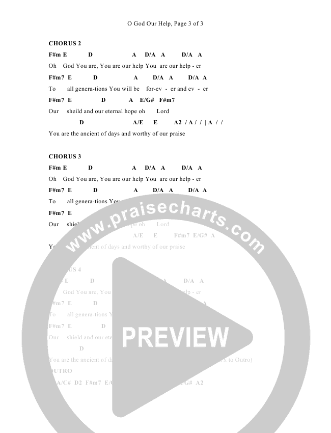 Download the PDF Chord Charts for O God Our Help In Ages Past by Charles Billingsley, from the album God Of The Ages. This song was arranged by Adam Lancaster in the key of A.