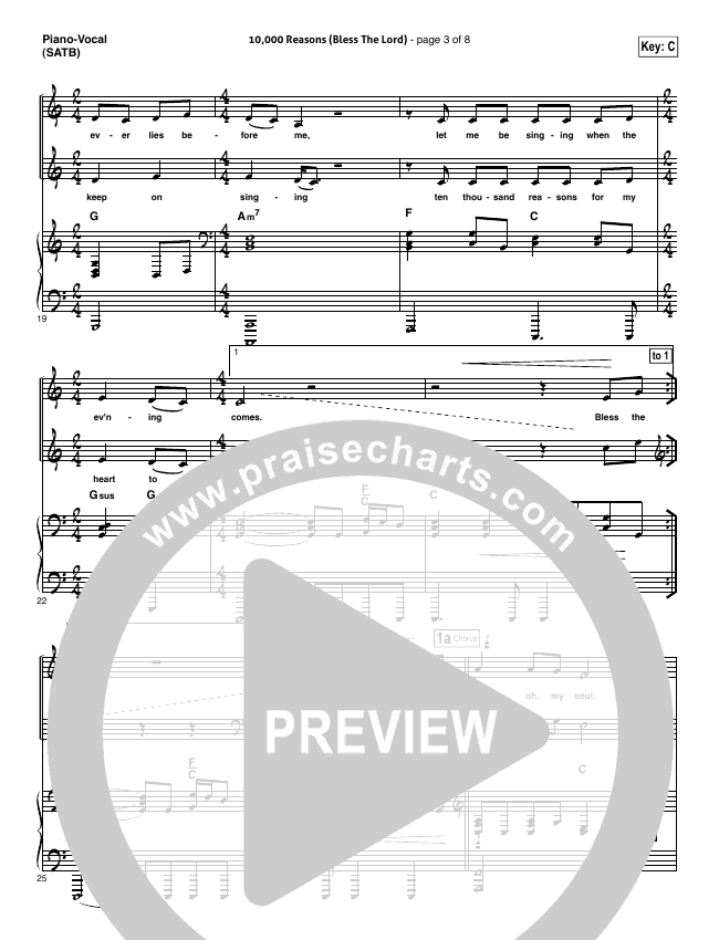 10,000 Reasons (Bless The Lord) Sheet Music PDF (Matt Redman / Passion)