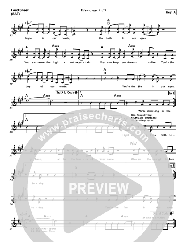 Download the sheet music for Fires by Matt Redman, from the album 10000 Reasons. This song was arranged by Brad Henderson in the key of A, Bb.