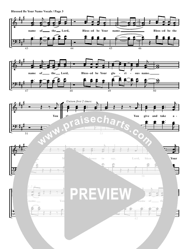 Blessed Be Your Name Sheet Music PDF (G3 Worship)
