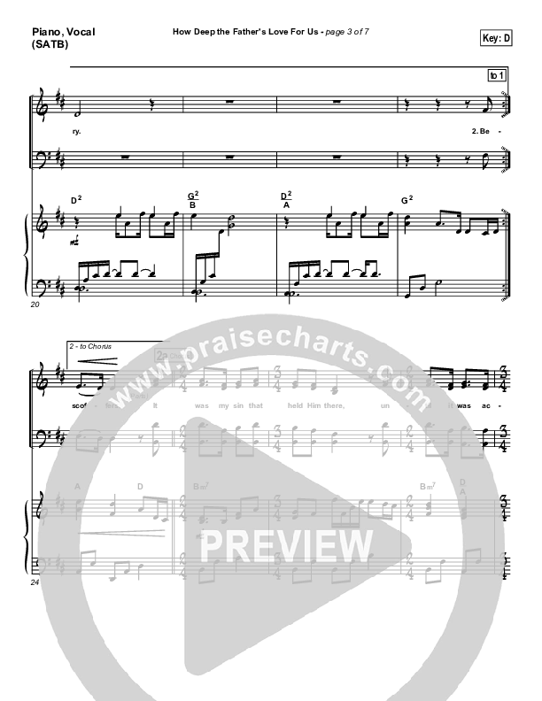 Download the sheet music for How Deep The Father's Love For Us by Stuart Townend, from the album WOW Worship Red. This song was arranged by David Shipps in the key of D, Eb.