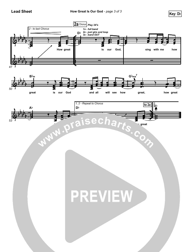 Download the sheet music for How Great Is Our God by Chris Tomlin, from the album Arriving. This song was arranged by Daniel Galbraith in the key of A, Bb, C, Db.