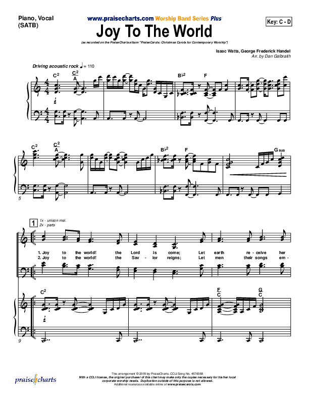 Joy To The World Sheet Music PDF (PraiseCharts Band / Arr. Daniel Galbraith)