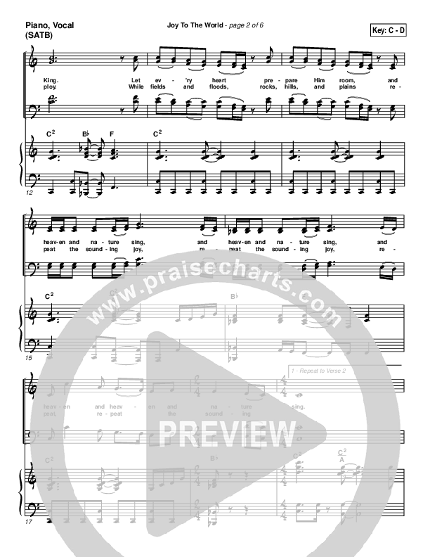 Download the sheet music for Joy To The World by PraiseCharts Band / Arr. Daniel Galbraith, from the album PraiseCarols (Vol. 1). This song was arranged by Daniel Galbraith in the key of Bb, C.