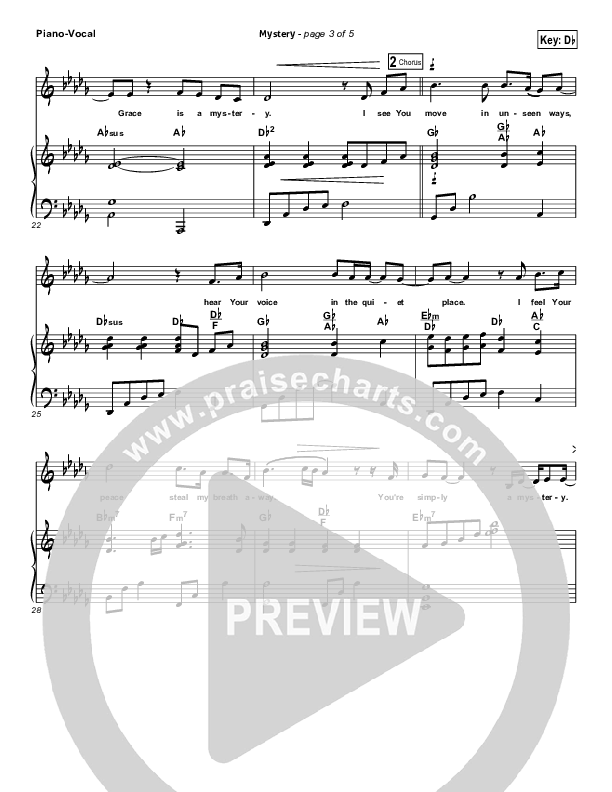 Download the sheet music for Mystery by Gateway Worship, from the album The More I Seek You. This song was arranged by Brad Henderson in the key of D, Db.