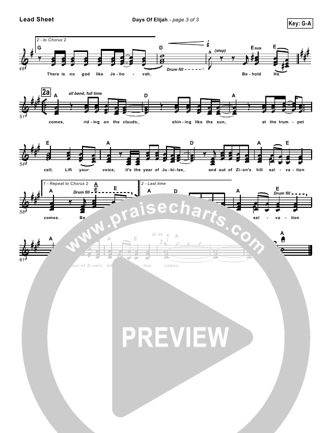 Download the sheet music for Days of Elijah by Twila Paris, from the album He Is Exalted. This song was arranged by John Wasson in the key of F, G.