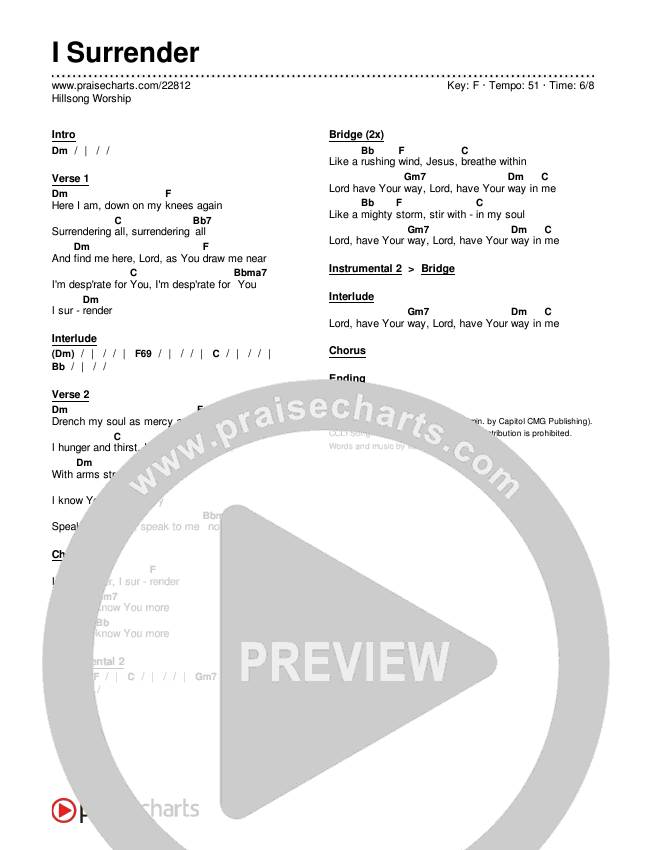Download the PDF Chord Charts for I Surrender by Hillsong Worship, from the album Cornerstone (Deluxe). This song was arranged by Daniel Galbraith / Brad Henderson in the key of E.