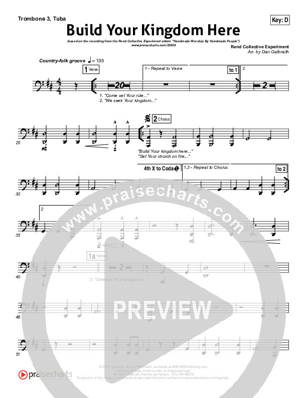 Build Your Kingdom Here Trombone/Tuba Sheet Music PDF (Rend Collective)