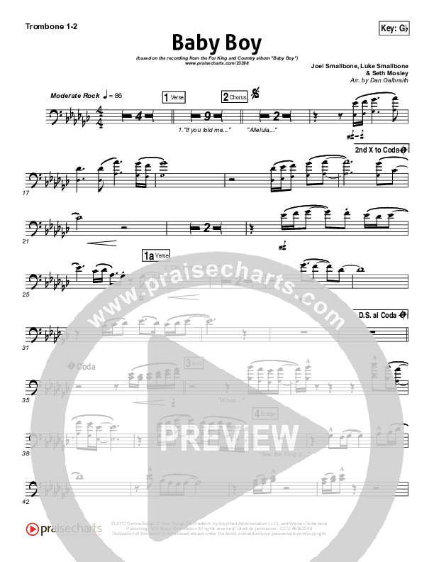 Baby Boy Trombone Sheet Music PDF (for KING & COUNTRY)