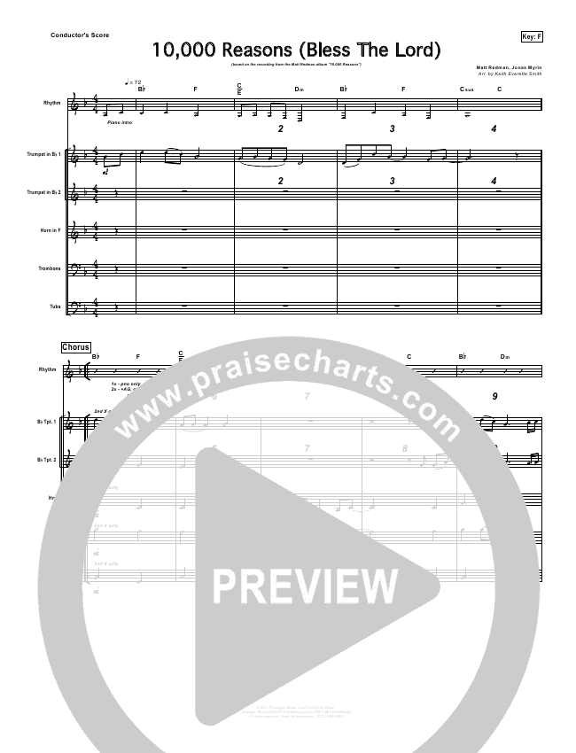 Download the Orchestration for 10,000 Reasons (Bless The Lord) (Instrumental) by Keith Everette Smith, from the album Arrangements Of Keith Everette Smith. This song was arranged by Keith Everette Smith in the key of F.