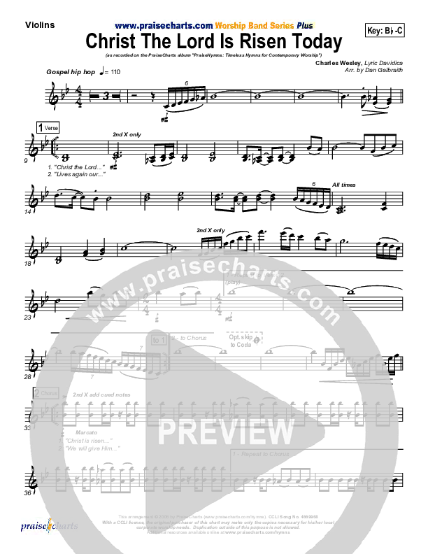 Download the Orchestration for Christ The Lord Is Risen Today by PraiseCharts Band / Arr. Daniel Galbraith, from the album PraiseHymns (Vol. 1). This song was arranged by Daniel Galbraith in the key of Bb, C.