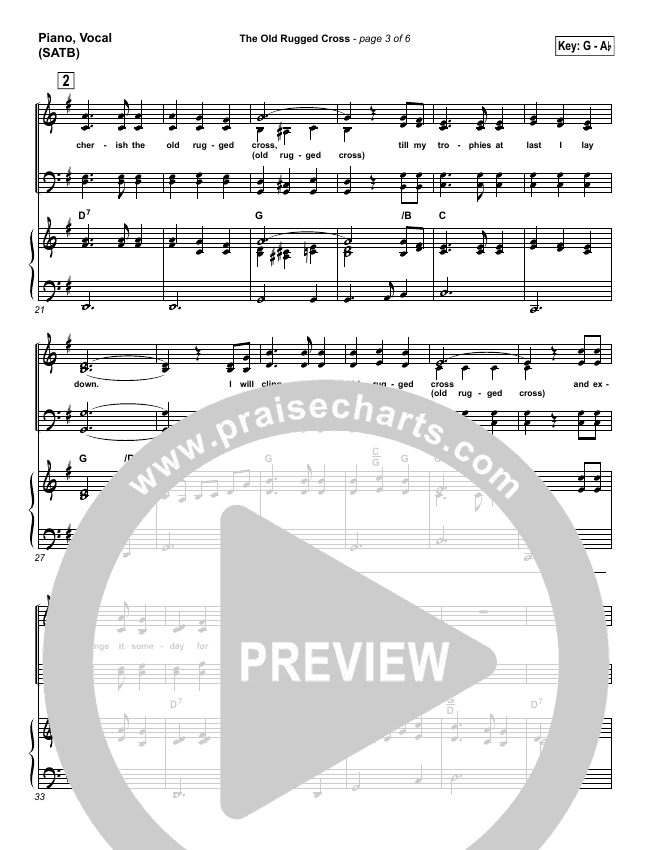 The Old Rugged Cross Sheet Music PDF (Traditional Hymn / PraiseCharts)
