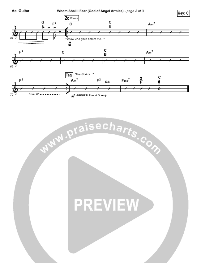 Download the Rhythm Chart for Whom Shall I Fear (God Of Angel Armies) by Chris Tomlin / Passion, from the album Let The Future Begin. This song was arranged by Daniel Galbraith in the key of A, Ab, B, Bb, C, G.