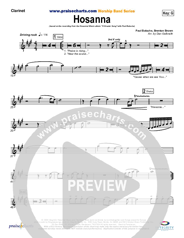 Download the Orchestration wind parts for Hosanna (Praise Is Rising) by Paul Baloche, from the album A Greater Song. This song was arranged by Daniel Galbraith in the key of F, G.