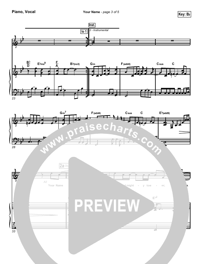 Download the sheet music for Your Name by Paul Baloche, from the album A Greater Song. This song was arranged by Daniel Galbraith in the key of A, Bb.