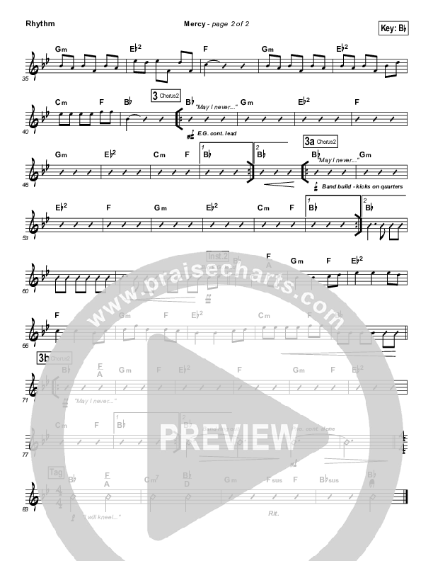 Download the Rhythm Chart for Mercy by Matt Redman, from the album Your Grace Finds Me. This song was arranged by Daniel Galbraith in the key of Bb, C.