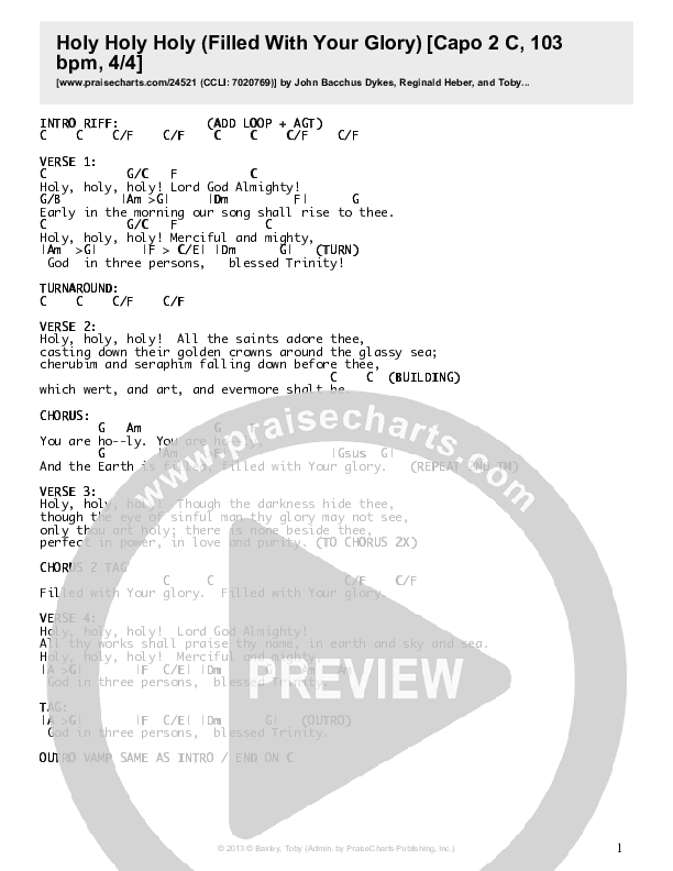 Download the PDF Chord Charts for Holy Holy Holy (Filled With Your Glory) by Toby Baxley, from the album Holy Holy Holy: Filled With Your Glory. This song was arranged by Toby Baxley in the key of D.