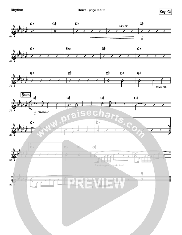 Download the Rhythm Chart for Thrive by Casting Crowns, from the album Thrive. This song was arranged by Daniel Galbraith in the key of F, G, Gb.