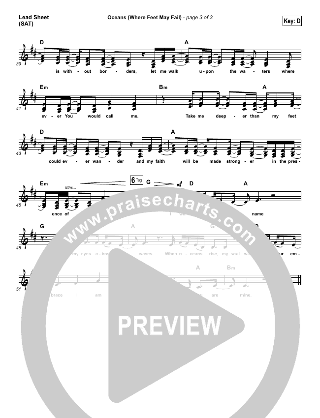 Oceans (Where Feet May Fail) (Radio) Sheet Music PDF (Hillsong UNITED / TAYA)