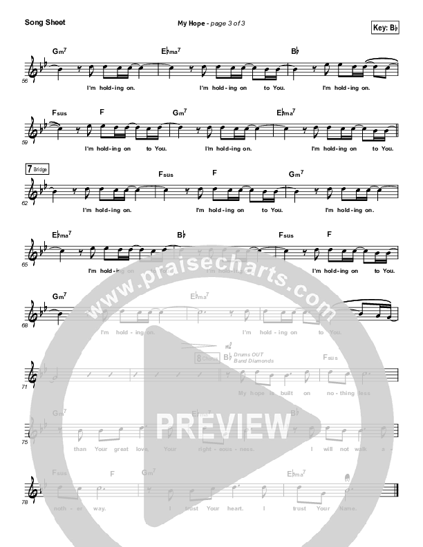 Download the sheet music for My Hope by Paul Baloche, from the album Paul Baloche Live. This song was arranged by Shane Ohlson in the key of A, Bb.