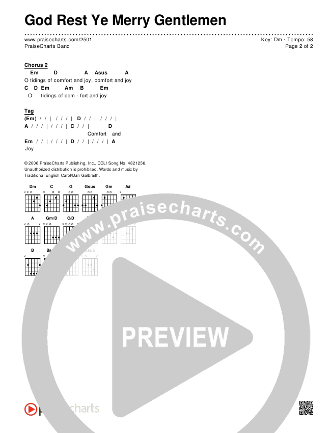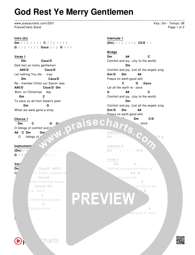 God Rest Ye Merry Gentlemen Chords PDF (PraiseCharts Band / Arr. Daniel Galbraith)