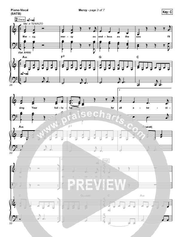 Download the sheet music for Mercy by Matt Redman / Passion, from the album Take It All. This song was arranged by Daniel Galbraith in the key of Bb, C.