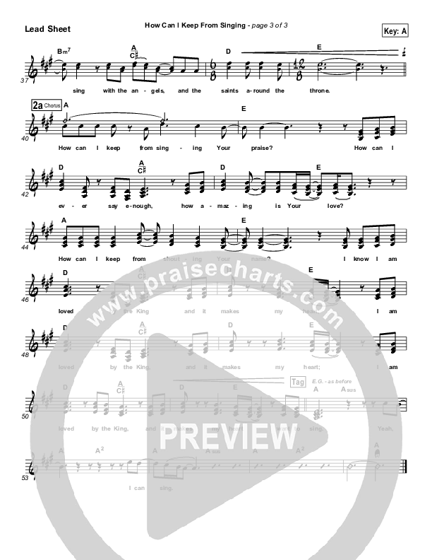Download the sheet music for How Can I Keep From Singing by Chris Tomlin, from the album See The Morning. This song was arranged by Keith Everette Smith in the key of A, Bb, G.