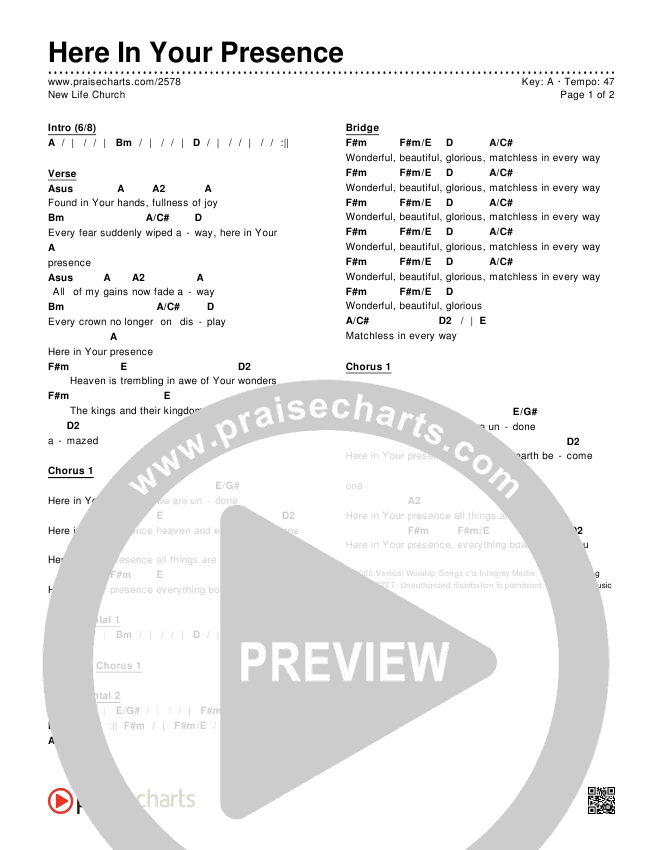 Here In Your Presence Chords PDF (New Life Worship)