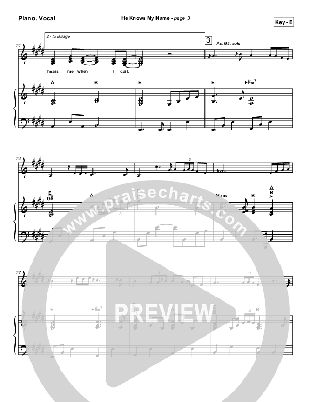 He Knows My Name Sheet Music PDF (Tommy Walker)