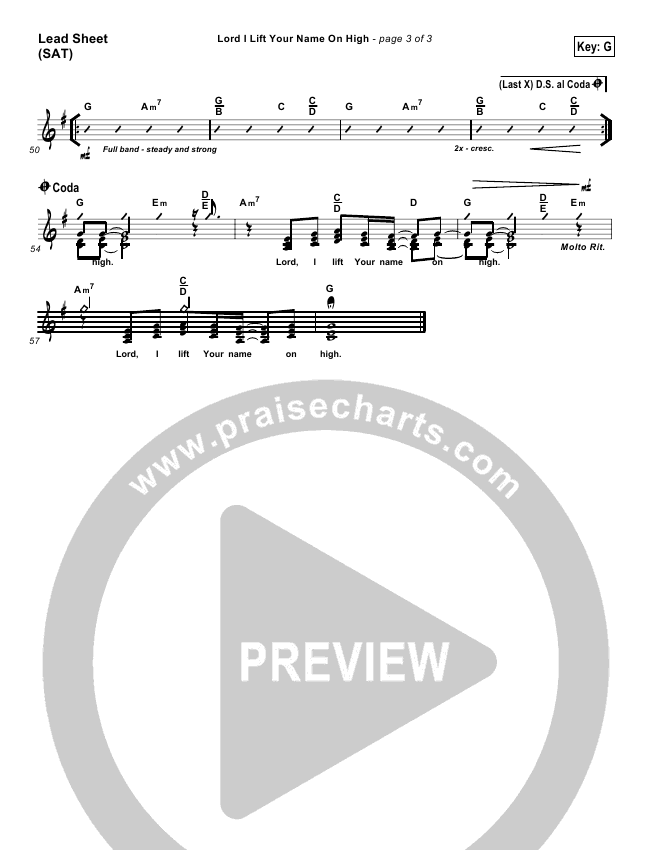 Lord I Lift Your Name On High Sheet Music PDF (Paul Baloche)