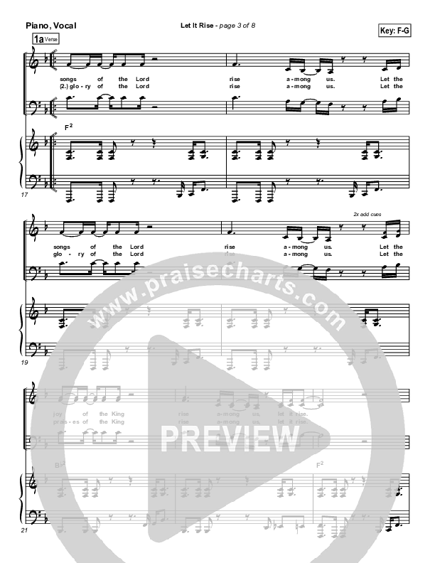 Download the sheet music for Let It Rise by Holland Davis, from the album WOW Worship Blue. This song was arranged by Daniel Galbraith in the key of F, G.