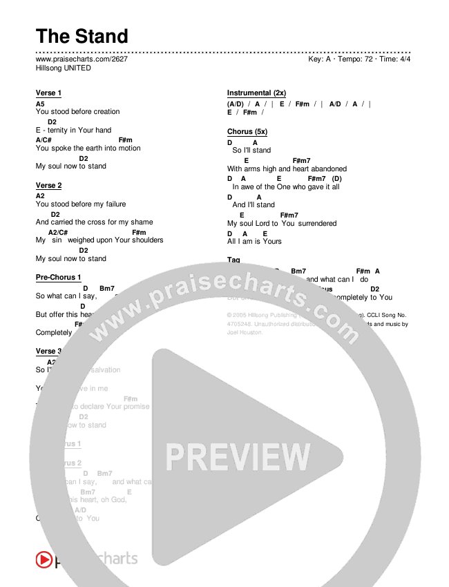 The Stand Chords PDF (Hillsong UNITED)