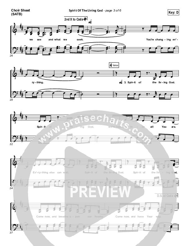 Download the Choir Sheet for Spirit Of The Living God by Vertical Worship, from the album Church Songs. This song was arranged by Daniel Galbraith / Dave Iula in the key of C, D, Db, E, Eb, F, G.