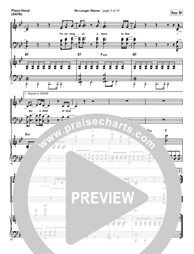 No Longer Slaves (Spontaneous)(Live) Sheet Music PDF (Bethel Music)