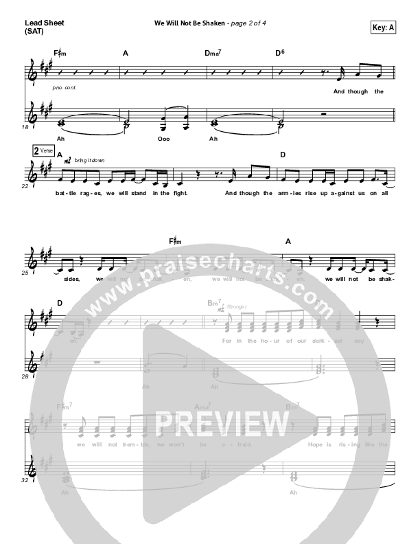 Download the Orchestration for We Will Not Be Shaken by Bethel Music, from the album We Will Not Be Shaken. This song was arranged by Daniel Galbraith / Jared Haschek in the key of A, Ab.