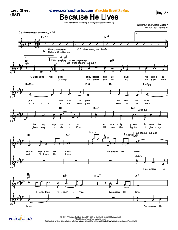 Because He Lives Sheet Music PDF (PraiseCharts Band / Arr. Daniel Galbraith)
