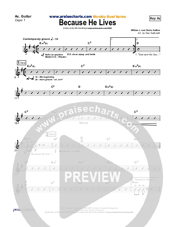 Because He Lives Sheet Music PDF (PraiseCharts Band / Arr. Daniel Galbraith)