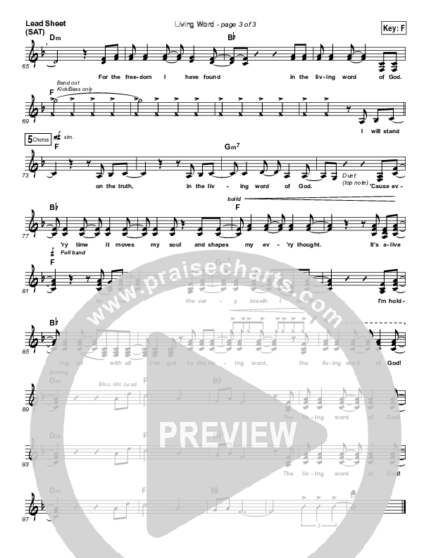 Download the sheet music for Living Word by Jeremy Camp, from the album I Will Follow. This song was arranged by Erik Foster in the key of F, G.