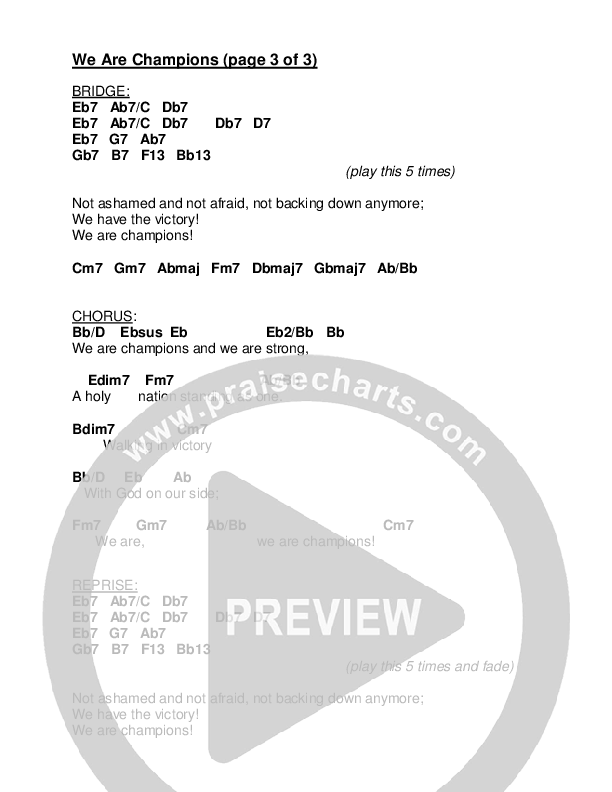 Download the PDF Chord Charts for We Are Champions by Jermaine Rodriguez, from the album Bless The Lord.