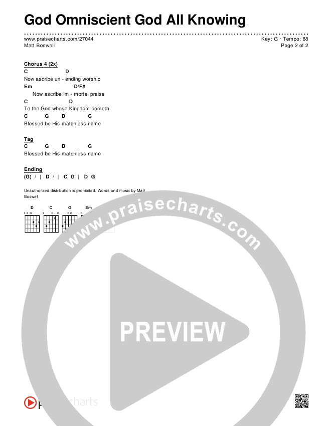 God Omniscient God All Knowing Chords PDF (Matt Boswell)