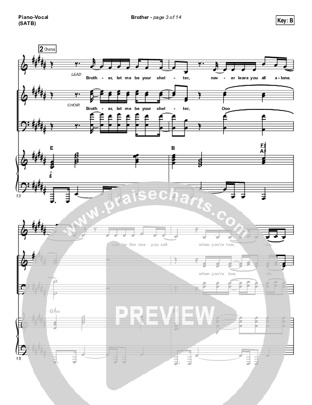 Download the sheet music for Brother by Needtobreathe, from the album Rivers In The Wasteland. This song was arranged by Daniel Galbraith in the key of B, Bb.