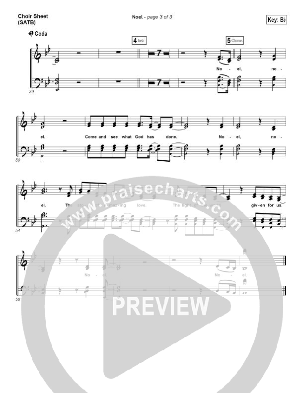 Download the Choir Sheet for Noel by Lauren Daigle, from the album Adore: Christmas Songs Of Worship. This song was arranged by Daniel Galbraith / Jared Haschek in the key of Bb, C, D, Db, E, Eb, F, G.